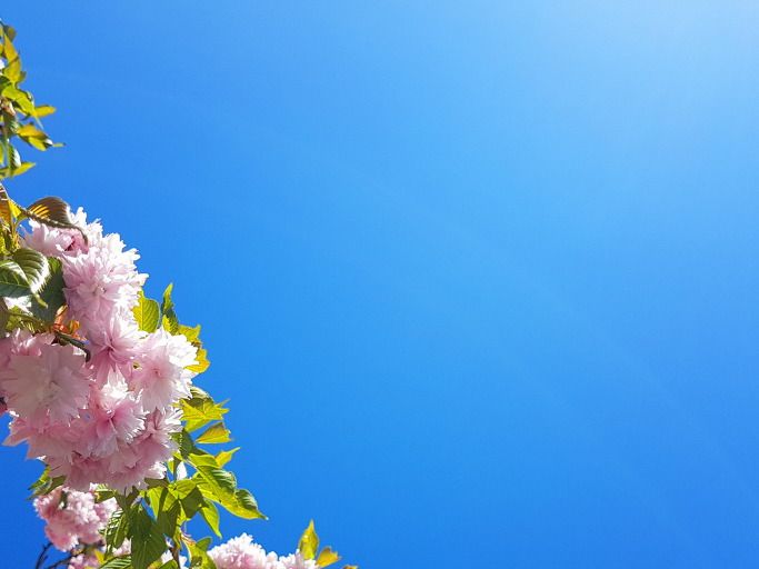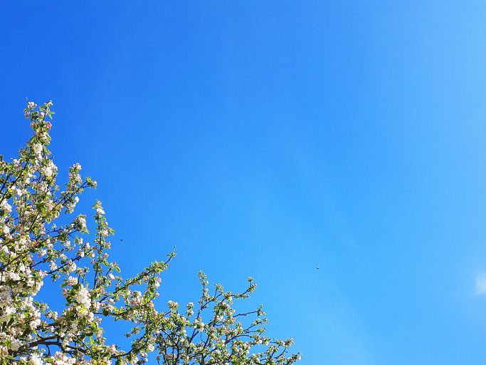 사과나무꽃 상공에 자연구름도 없고 꼬리구름도 없다.