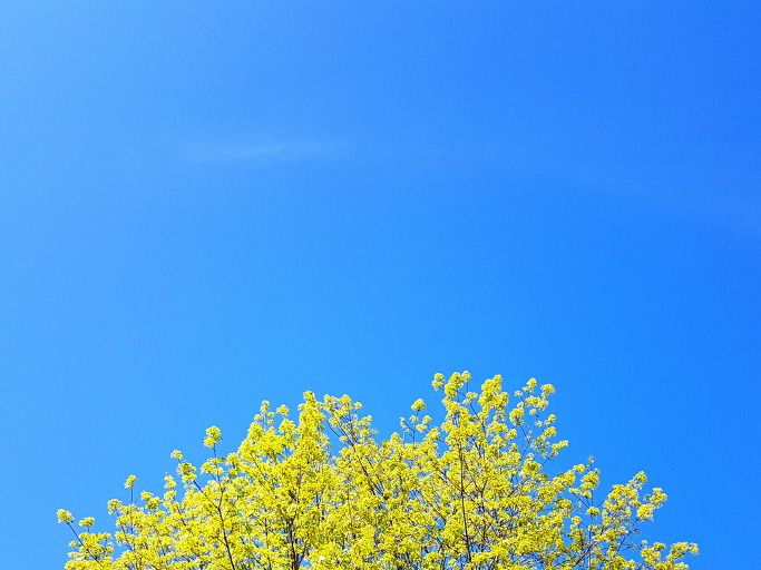 단풍나무꽃 상공에 자연구름도 없고 꼬리구름도 없다.