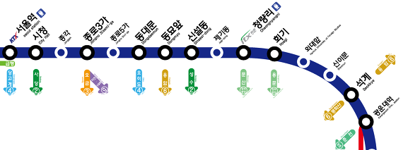 * Fervoja linio modifita surbaze de la fonto: http://english.visitkorea.or.kr/
