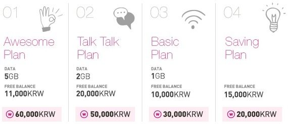 Prezoj de aliaj servoj ĉe http://www.egsimcard.co.kr/eng/buy-eg-sim-card/charges.asp