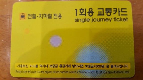 La trafika karto (transit card) T-money estas aĉetebla kaj reŝargebla ĉe aŭtomataj vendmaŝinoj, kioskoj kaj oportunaj butikoj. La trafika karto havas la avantaĝojn: (1) vi ne bezonas ĉiufoje aĉeti unufojan veturkarton kaj ricevi kaŭcion, (2) ĉiufoja veturo kun la trafika karto ricevas la rabaton de 100 ŭonoj, (3) la karto tutlande validas por buso, metroo, trajno kaj taksio.