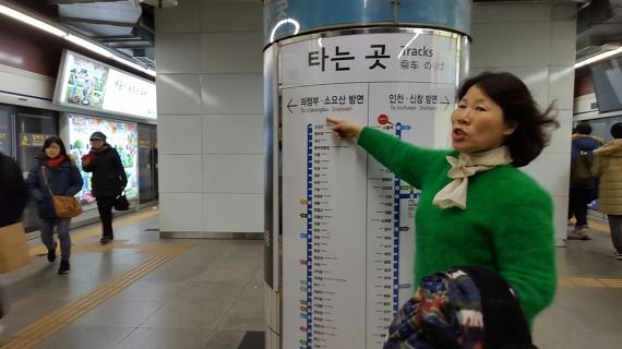 Nepre kontrolu la ĝustan direkton al Uijeongbu kaj Soyosan, sed ne al Incheon kaj Sinchang.