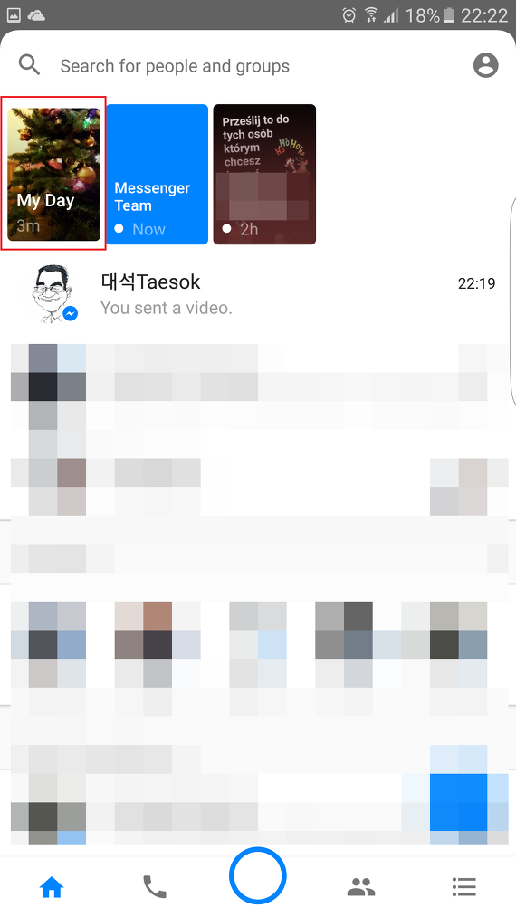 먼저 메신저 초기 화면 제일 위에 My Day에 나타난 동영상이나 사진을 선택한다.