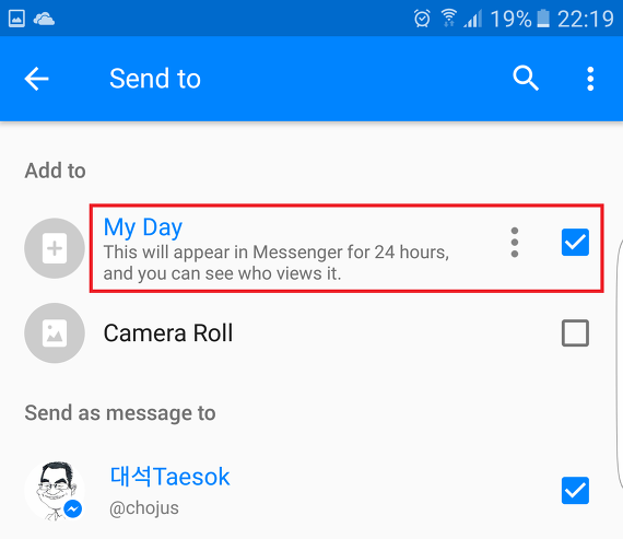 페이스북 메신저 My Day 기능으로 멍청이 된 하루