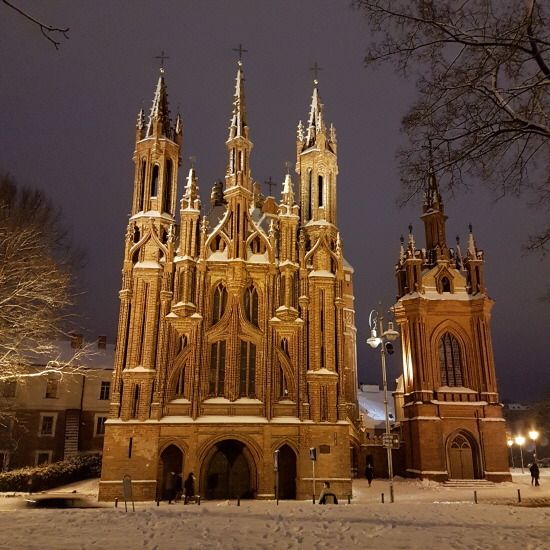 ▲ 후기 고딕 건축의 걸작으로 평가 받고 있는 안나 성당 낮과 밤