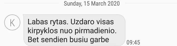 3월 중순 마침 이발하러 가야 할 때였다. 그런데 3월 15일 이발사로부터 아래 문자쪽지가 왔다.