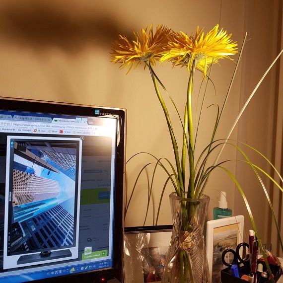 * 주말에 올 새 모니터(화면 속 사진)와 딸아의 노란 색 꽃선물