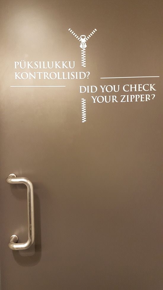 * 에스토니아 탈린 공항 화장실에서 나가는 문 - 당신을 지퍼(쇠줄닫이)를 확인했나요?