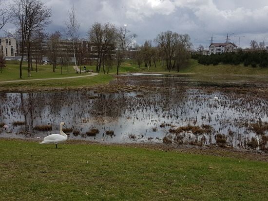 저쪽 연못변에는 또 다른 백조 한 마리가 있었다. 빌뉴스 도심의 작은 연못에 백조 세 마리가 살고 있다니 놀랍고 신기했다. 연못변 백조를 좀 더 가까에서 찍으려고 다가가는 순간 연못 가운데에 있던 백조 한 마리가 퍼드득 소리를 내면서 쏜살같이 날아왔다.