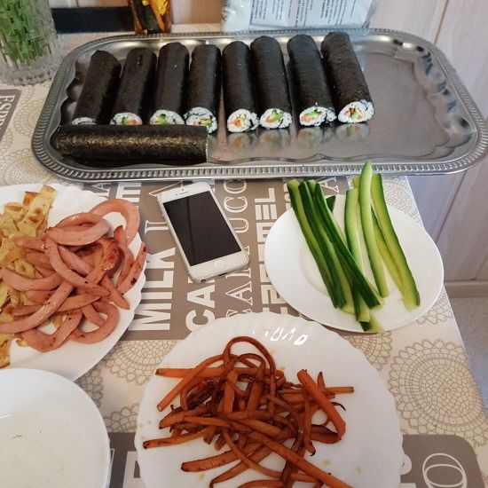 좋거나 잘하는 것은 다 "한국인 피" 때문이라고 생각하는 딸아이에게 부끄럽기도 하고 기쁘기도 하다. 요가일래는 김밥 두 줄을 따로 챙겨놓았다,