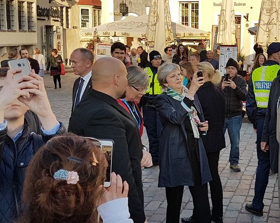 영국 총리 테리사 메이가 탈린 광장에 나타나니