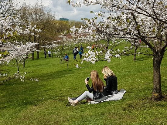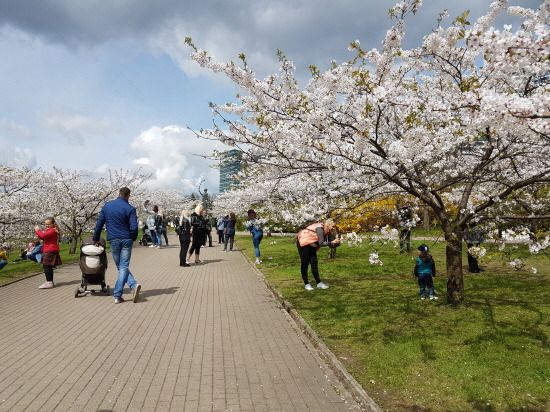 이제야 북위 55도 위치한 빌뉴스에는 이 벚나무에 꽃이 만개했다.