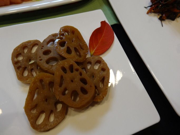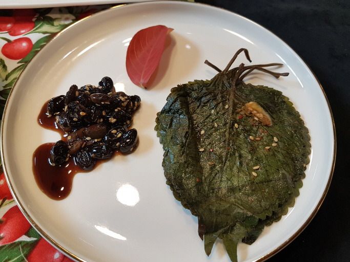 우리를 매료시킨 것이 하나 더 있었다. 여러 음식물 옆에 놓인 단풍잎과 곱게 물든 나뭇잎이었다. 식감에 색감이 더해졌다. 일반 가정집 음식에 이렇게 단풍으로 장식된 것은 처음 보았다.