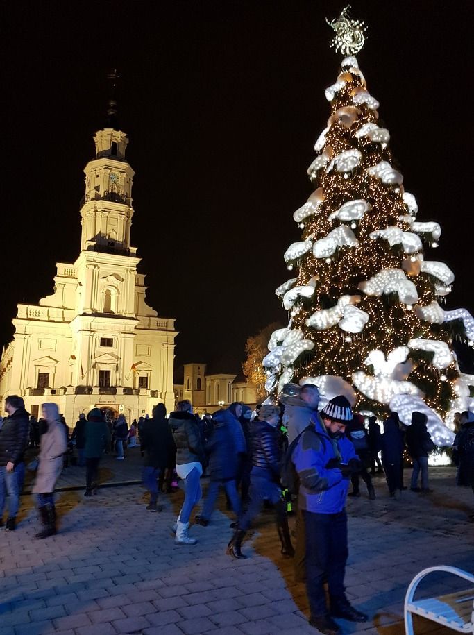 크리스마스가 다가오고 있다. 도심에는 거대한 크리스마스 트리가 장식되어 축제 분위기를 자아내고 있다. 지난 토요일 리투아니아 제2의 도시인 카우나스를 다녀왔다. 고개를 쳐든 백조를 닮았다는 구시청사가 있는 광장에 두 차례나 갔다. 낮 풍경과 밤 풍경을 보기 위해서다. 아래는 구시청사의 낮과 밤 모습이다.