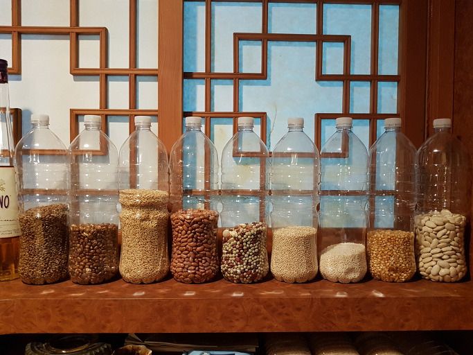 11월 중순 한국을 잠시 방문했을 때 머문 지인의 집에서 좋은 방법을 얻었다. 바로 찬장에 있는 물건을 눈에 보이게 하는 것이다. 지인은 재활용한 생수병에 곡물을 담아 부엌 선반 위에 올려 놓았다. 다양한 곡물 색깔으로 장식용에도 안성맞춤이다. 마치 곡물과 함께 더불어 숨 쉬며 살아가는 느낌이 든다.