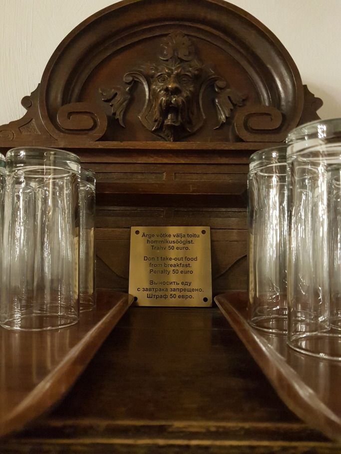 투숙객수에 알맞게 음식을 준비했는데 후자가 많은 경우 조식 마감 가까이에 오는 사람들에게는 음식이 부족할 수 있다. 이런 골치 아픈 얌체 손님들 때문에 일전에 묵은 에스토니아 탈린에 있는 한 호텔은 조식당에 아래 사친의 안내 동판을 붙여 놓았다.