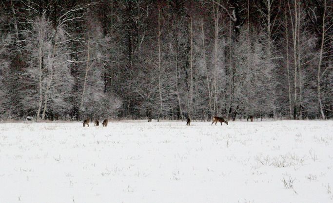 일전에 크리스마스 연휴를 맞아 지방으로 이동하는 중 사슴 한 무리가 고속도로 옆 들판으로 나와 하얀 눈 속에 한가로이 풀을 뜯고 있었다. 고속도로가 아니고 또한 망원렌즈가 있었다면 좀 더 사슴 무리를 관찰하면서 촬영을 하고 싶었다.