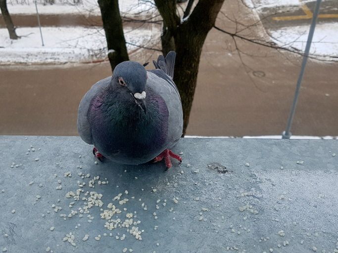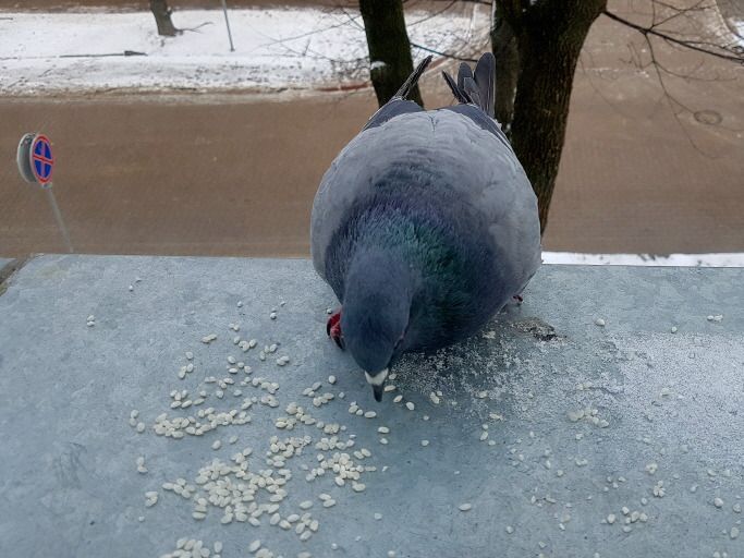 아침에 일어나 부엌으로 가니 창틀 양철판을 두드리는 소리가 들렸다. 가까이 가서 보니 비둘기 한 마리가 쌀을 쪼아 먹고 있었다.