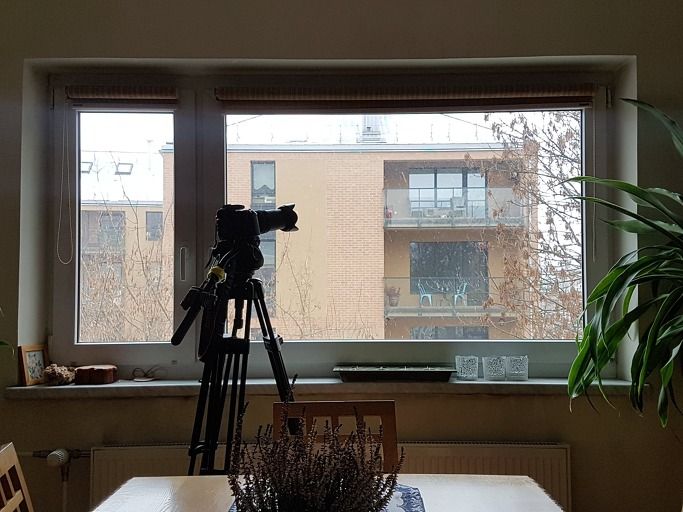 북유럽 리투아니아는 밤이 제일 긴 동지와 비교해서 2월 초순 요즘 일몰 시간이 거의 1시간 남짓 늦어졌다. 1월 초순부터 거실 창가 쪽에 삼각대를 세워놓고 카메라를 얹어놓았다.