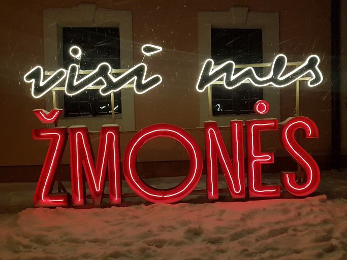 아래 리투아니아어 문구는 "우리 모두는 사람이다"다.