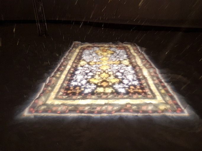 눈 위에 조명으로 양탄자가 만들어져 있다.