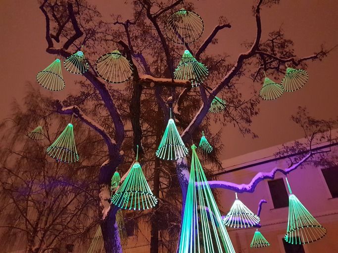 나무에 매달린 형광 작품이 제일 인상적으로 다가왔다.