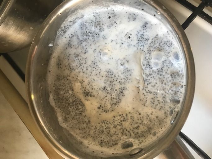 3. 치아 씨와 우유를 냄비에 넣고 약한 불에 끓인다.