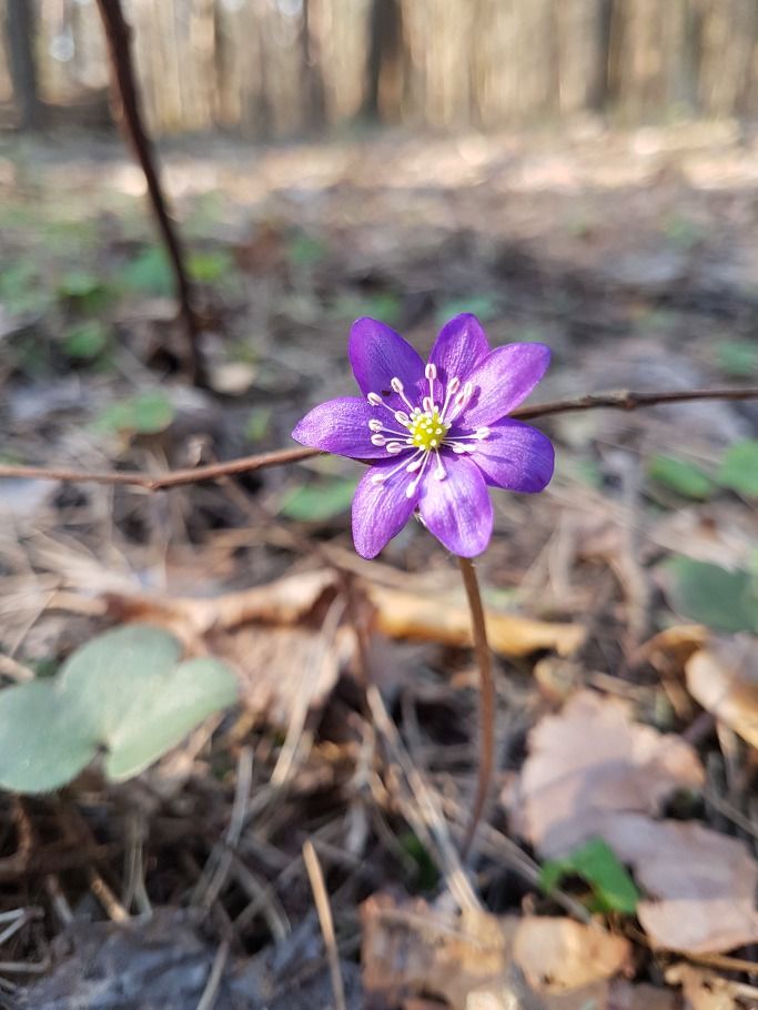 소나무가 주를 이루고 있는 숲 속 안으로 들어가니 보라색 노루귀가 꽃을 피워 정말 봄이 왔음을 알려 주고 있었다.