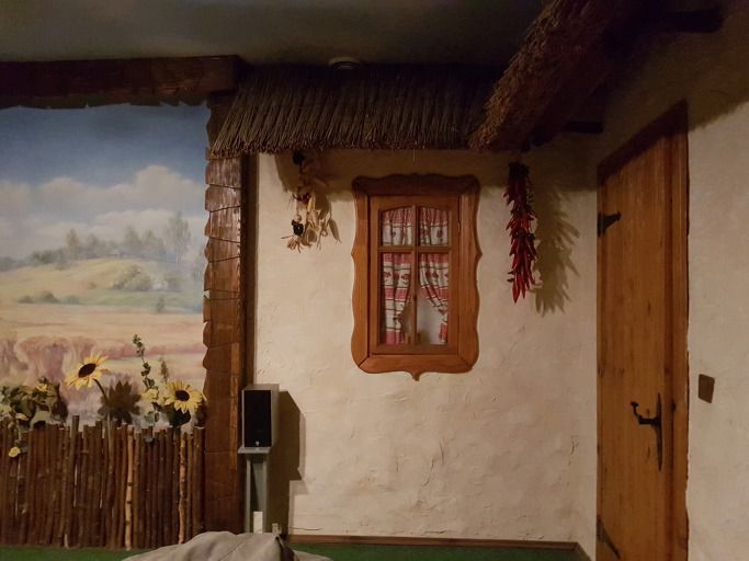 사우나에 들어가는 입구에 조각상 하나가 우리를 반겼다. 사우나 빗자루를 들고 있는 사우나 안마사였다. 라덱은 "오늘 우리가 빗자루 안마를 받을거야!"라고 했다.