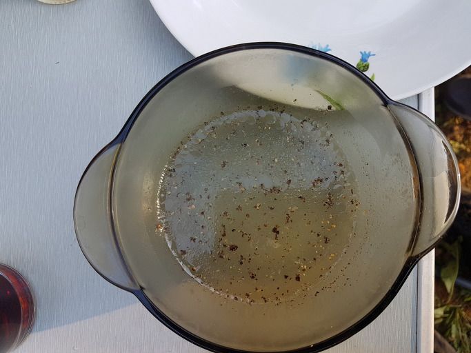 둥둥 떠다니는 양고기 기름을 걷어 내서 썰은 양파 위로 붓는다. 어디에다가 이 기름 양파를 사용할까 궁금하다.