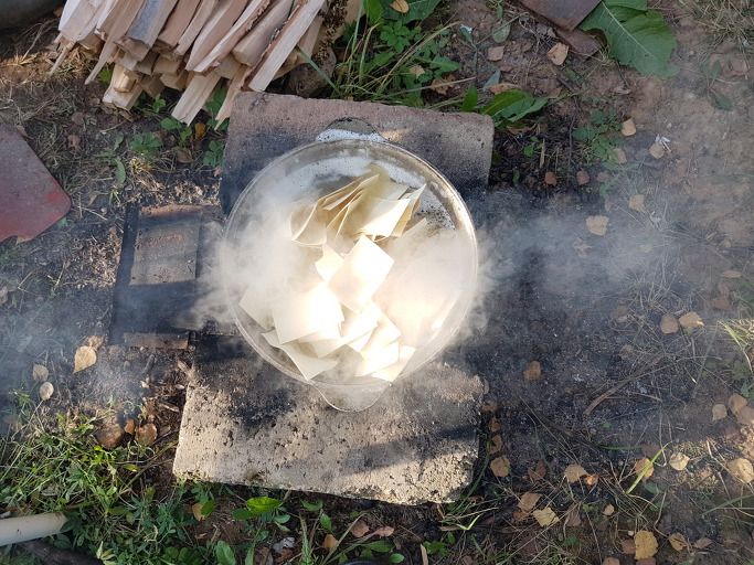 아무런 첨가물 없이 양고기와 물을 숯불에 푹 끊인다.