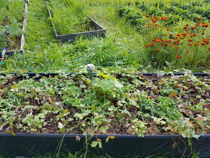 봄철 같은 날씨가 지속되어서 그런지 딸기가 하얀 꽃을 또 피우고 있다. 이 텃밭의 딸기가 이 집단 다차 지역에서 맛있기로 소문 나 있다고 한다. 갈리나는 그 이유가 옆에서 키우고 있는 야생딸기에 있다고 여긴다. 벌들이 서로 가까이에 있는 야생딸기 꽃과 딸기 꽃을 번갈아 왕래한 결과가 아닐지...