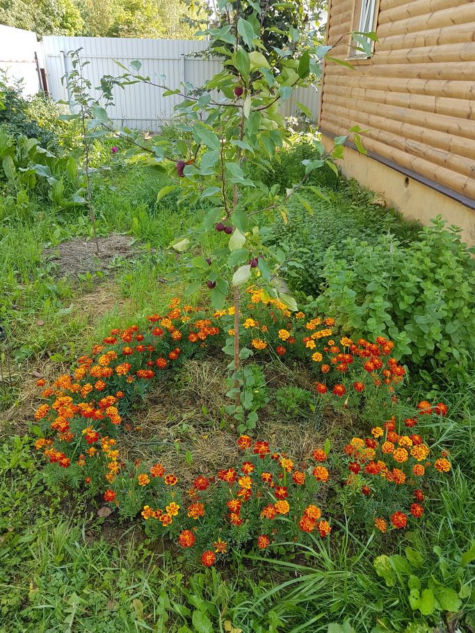 꽃을 심어 어린 꽃사과나무 둘레를 마치 화관으로 장식을 해놓은 것이 참으로 인상적이다.