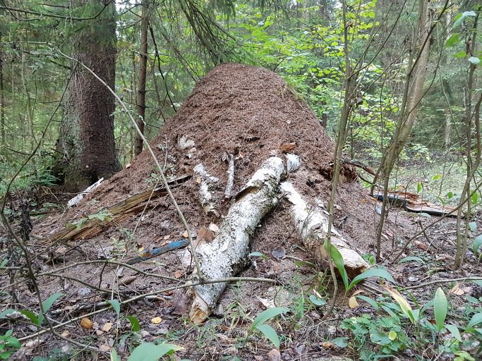 개미들이 침엽수 낙엽을 끌어 모아 태산 같은 집을 지어 놓았다.