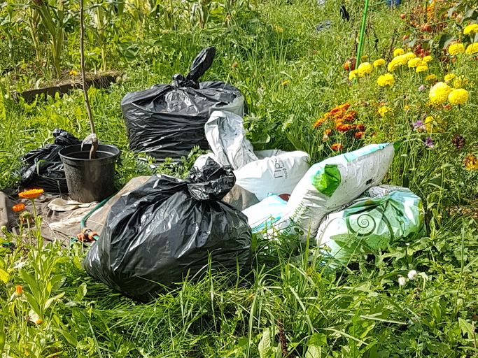 잡초 위에는 여러 개의 비닐 봉투가 흩어져 있다. 저 비닐 봉투의 정체는 대체 무엇일까? 혹시 쓰레기를 담아 놓은 봉투가 아닐까? 궁금해서 물어 보니 뜯은 잡초를 봉투에 넣고 꽁꽁 묶어서 햇볕에 놓아서 퇴비를 만들고 있다고 했다. 공기에 노출된 퇴비장보다 이렇게 하면 훨씬 더 빨리 발효가 된다고 했다.