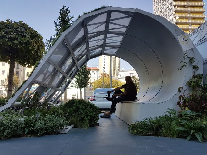 긴의자까지 마련되어 사람을 기다리거나 잠시 쉴 수도 있다. 신 아르바트 대로를 산책하고 있으니 서울로 7017 공중공원이 떠오른다[라벤더 향 피어오르는 서울로 왜 since 7017일까]. 고가도로를 철거하지 않고 시민들의 산책과 휴식을 할 수 있는 공원으로 만들었다. 아르바트 대로 인도가 이런 공원 모습으로 꾸며져 있는 것에 러시아 변화를 다시 한번 새삼 느낀다.