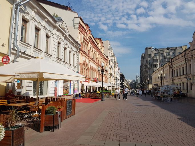 아르바트 시작점 쪽에서 끝점 쪽으로 바라보는 거리 모습이다.
