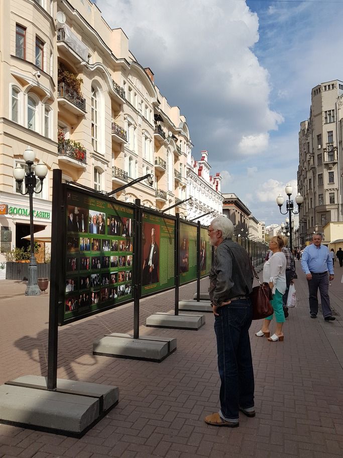 러시아의 유명한 예술가들을 알리는 게시판이 행인들의 발길을 멈추게 한다.