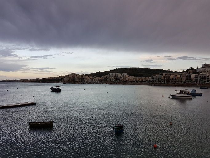 예상은 했지만 한순간에 바다 쪽에서 강풍을 동반한 비가 쏟아지기 시작한다. 걸음아 나 살려라 식으로 골든만에 있는 버스 정류장을 향해 달린다. 굵은 비가 주럭주럭 쏟아지는 정류장에서 30여분을 기다려도 버스가 오지 않는다[관련글: 몰타에서 버스타기 이야기]. 공유택시를 부르려고 하는 찰나에 버스가 온다. 숙소까지 오는 데 20여분이 걸린다. 그 사이에 구름이 걷히고 있다.