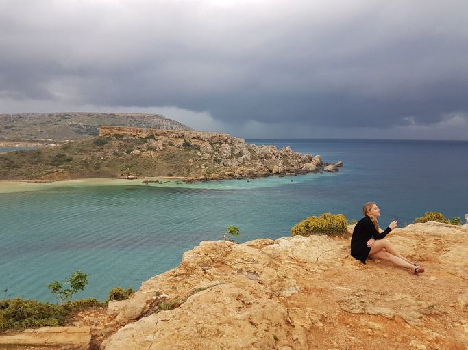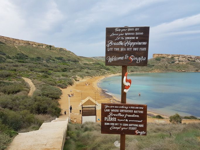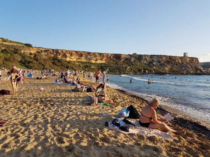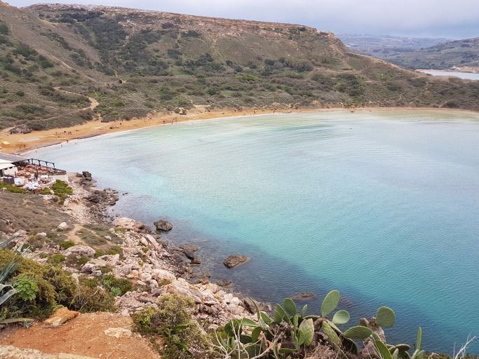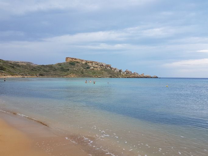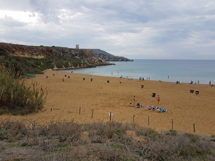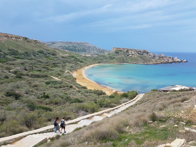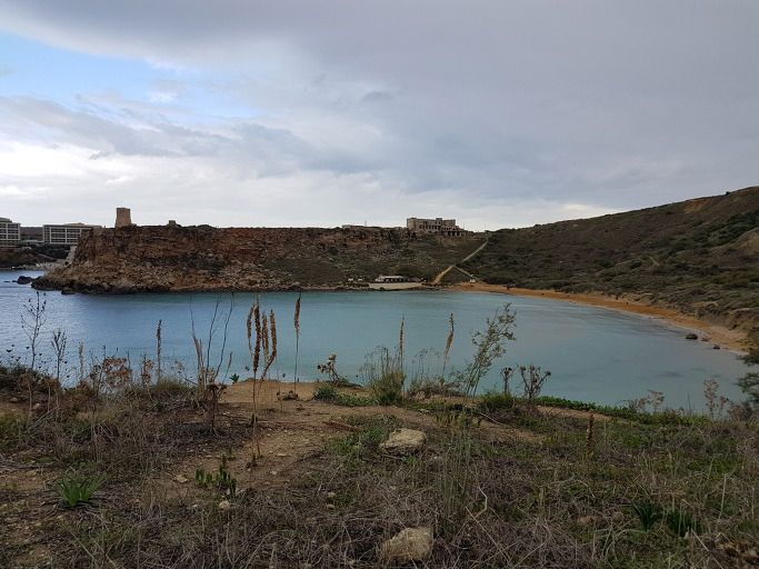 뒷배경은 아인투피하만(Għajn Tuffieħa Bay) 해수욕장이다. 리비라 해수욕장(리비에라 Riviera Beach)이라 불리기도 한다. 접근성으로 인해 골든만 해수욕장에 비해 사람들의 발길이 상대적으로 뜸하다. 아래 사진 오른쪽 산등성이 너머에 살짝 보이는 바다도 궁금하다.