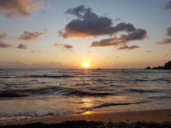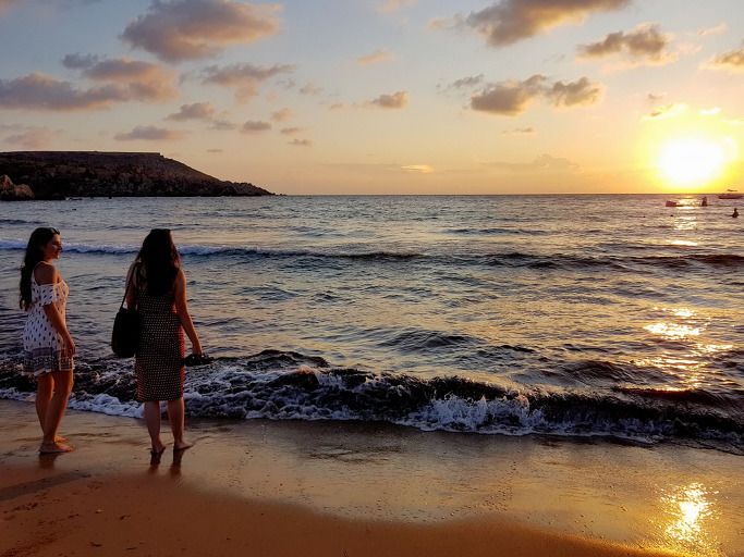 골든만 저쪽으로 해가 떨어진다. 황금빛 모래사장에서 바라본 일몰은 다음날 므디나에서 맞이한 일출과 더불어 몰타 가족여행의 백미 중 하나다.