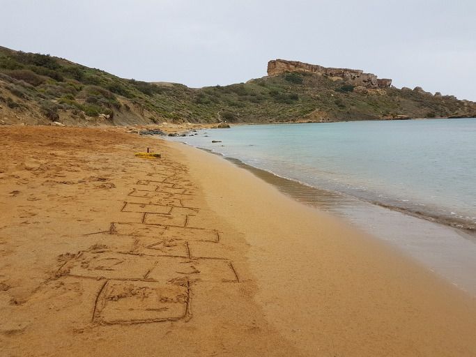 다행히 11시경 우리 숙소가 있는 세인트폴만 쪽은 날씨가 개이기 시작한다. 하지만 골든만 쪽은 여전히 구름이 잔뜩 끼어 있다. 해가 반짝이는 쪽이 뒤로 점점 멀어지니 앞에는 푸른 채소밭 시골 모습이 나타난다. 곧 이어 골든만에 도착한다. 눈앞에 펼쳐친 해변은 밝은 진흙색 멜리하 해변과는 전혀 다른 모습이다. 몰타에서는 아주 폭이 넓은 황금빛 모래사장이다. 아, 왜 여기를 골든만이라고 부르는 지를 단번에 알게 된다.