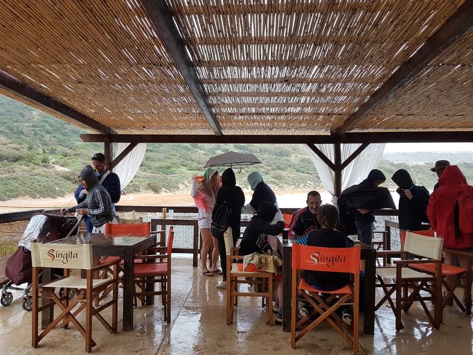비가 방울방울 떨어지기 시작한다. 커피숍으로 이동해 비를 피해 본다. 히지만 지붕은 대나무로 차양막은 줄로 듬성듬성 엮어져 있다. 빗방울이 틈새로 떨어지고 바람에 날려 들어온다.