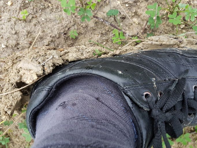 이제 신발은 천근만근이 되어 발걸음을 옮기기조차 힘들다. 미끄러져 손을 땅바닥에 대자 마치 페이트통 안으로 손을 닿은 듯하다. 손에도 찰흙이 듬뿍 묻는다.