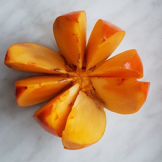 한국에서 먹은 단감은 늘 굵은 씨앗이 여러 개 있었다. 그런데 지금껏 먹어 본 스페인 단감은 씨앗이 없다. 단감 씨앗을 빼내는 수고를 하지 않아서 좋다.