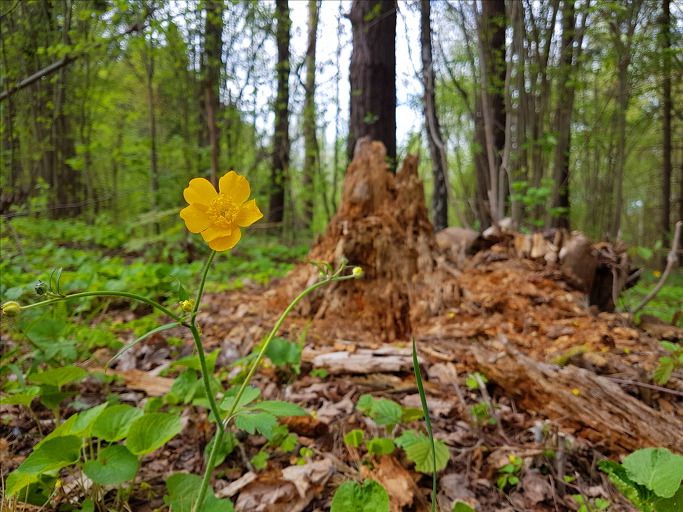 산미나리아재비꽃(ranunculus acris, meadow buttercup, tall buttercup, showy buttercup)으로 보인다. 노란색 꽃에 윤기가 반짝거린다. 마침 해가 구름에 가려 그 모습을 카메라에 담을 수가 없다.