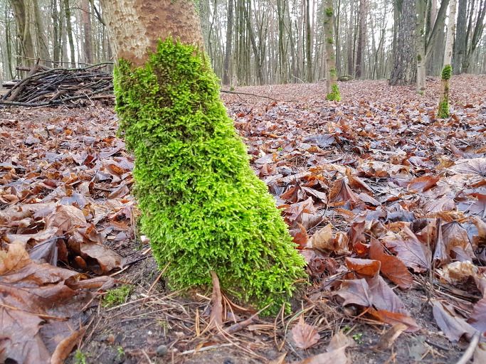 살아있는 나무 밑둥에도 이끼가 자라고 있다.