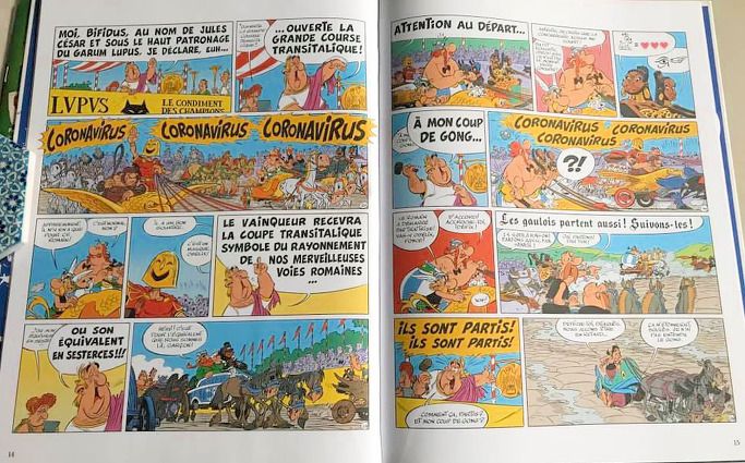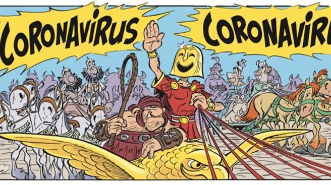 그런데 이 코로나바이러스 이름이 몇 년 전에 이미 만화책에 등장해 관심을 끌고 있다. 바로 아스테릭스(Asterix) 만화다. 로마군과 싸우는 켈트족 전사들의 이야기를 담고 있는 아스테릭스는 프랑스의 르네 고시니가 쓰고 알베르 우데르조가 그린 만화다.