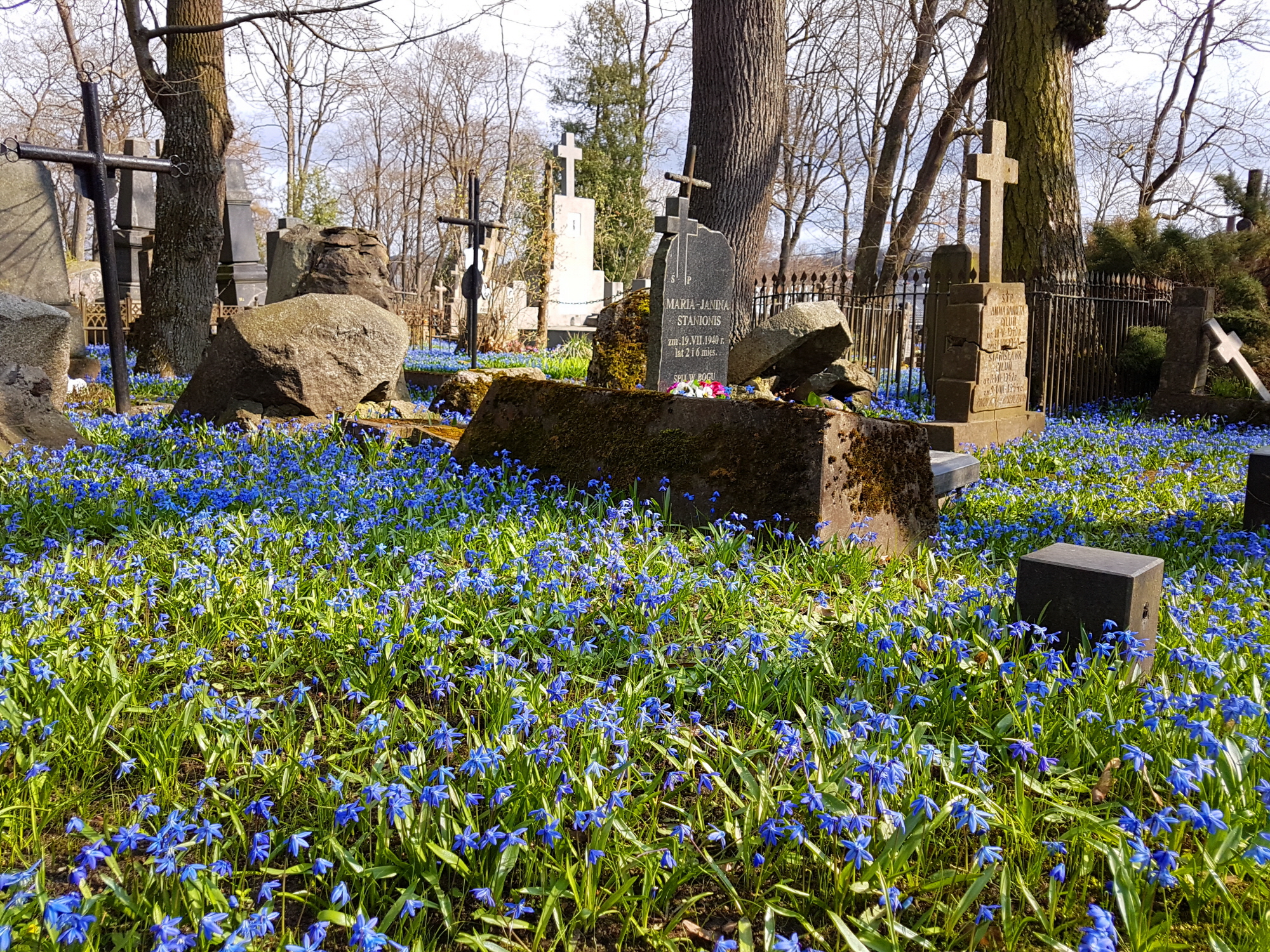 이 파란색 꽃의 정체는 바로 시베리아 스킬(Scilla siberica, Siberian squill)이다. 맑은 날 파란 하늘을 떠올리는 색상(azure blue)이다. 꽃이름에 시베리아가 들어가지만 자생지는 그것이 아니라 남서부 러시아, 코카서스 그리고 터키다. 유럽에도 광범위하게 자라고 있다. 리투아니아에 알려진 시기는 18세기다.