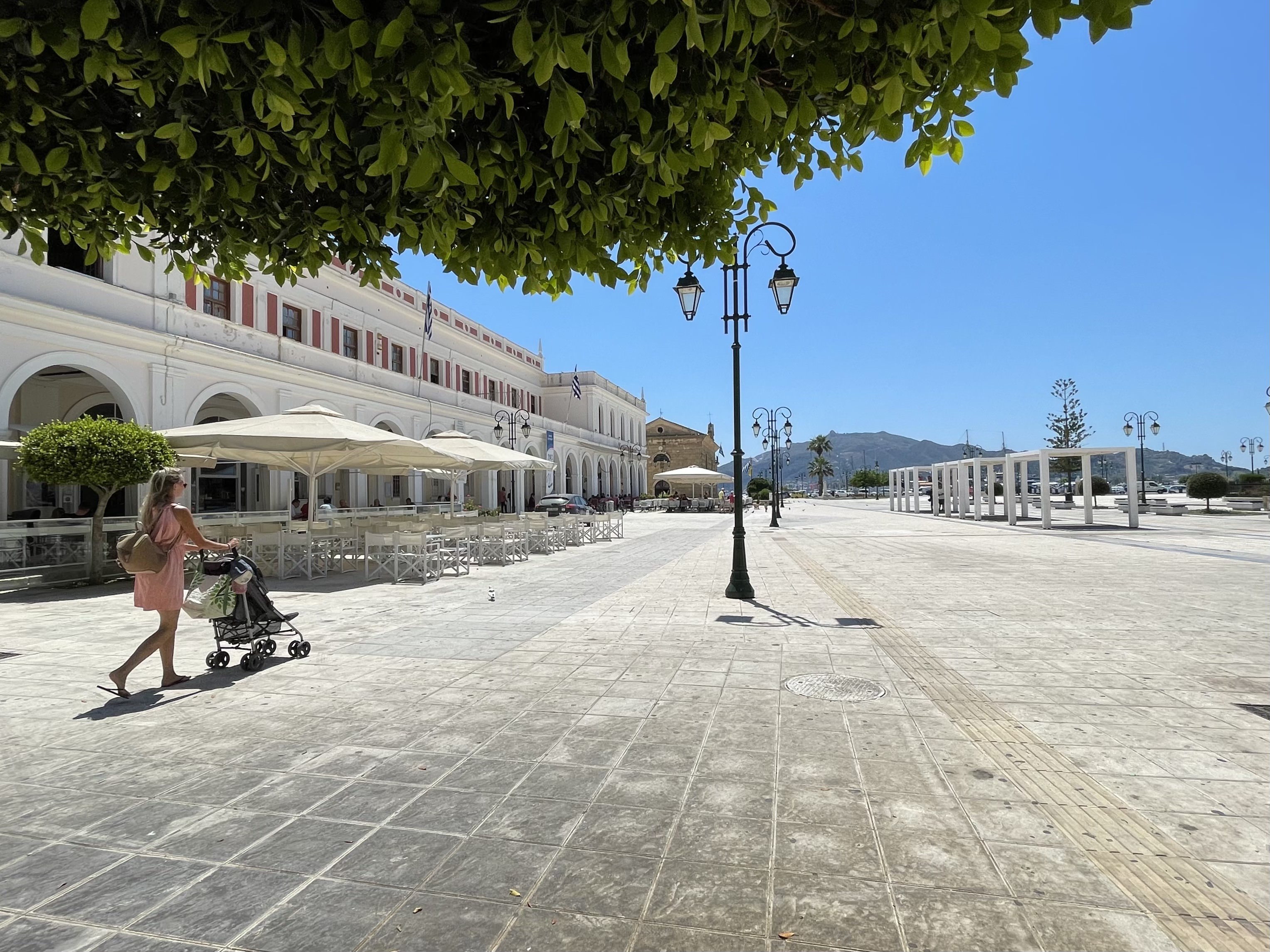 시내 중심가 솔로모스(Solomos) 광장이다. 저 파라솔 아래서 사람들이 따뜻한 커피나 시원한 맥주를 마시면서 세상사를 논할 날이 언제 다시 올 수 있을까? 유모차 한 대만이 텅 빈 광장을 가로질러 가고 있다.